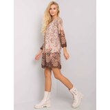 Beige dress with small flowers Oh BellaAiry, casual cut dress with small flowers from the Och Bella collection. Model with a flared cut with a round neckline with pleats. Sleeves 3/4 long. It has a lining. A girly model that in combination with heavy shoes will create a cool style ;)fabric content: 100% polyester, lining: 95% viscose, 5% elastane