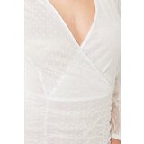 Ženska mini haljina<br /><br /> dugačak rukav<br /> V izrez<br /> detalj od tila<br /> kopčanje patentnim zatvaračem<br /> dužina mini