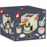 Želite šolju kafe? Ovaj set za imitaciju je pogodan za decu uzrasta od 3 godine i više, a sastoji se od aparata za kafu i 5 drvenih dodataka: dovoljno da postanete pravi barista! Savršen za dodavanje u kuhinju i za igru trpezarije, ovaj drveni set podstiče maštu dece, koja vole da imitiraju odrasle dok prave sopstvenu kafu. Sadrži: 2 šolje, 1 posudu za šecer sa kockicama šecera, 1 džezvu sa zrnima kafe, 1 kašičicu i, naravno, 1 aparat za kafu! Otvorite poklopac na vrhu igračke aparata za kafu da biste ubacili zrna kafe za mlevenje. Okrenite ručicu na stranu: ide džek, džek! Sakupite talog kafe u malu fioku na zadnjoj strani aparata i stavite ga u ručku filtera. Umetnite ručku u aparat za kafu i okrenite je za četvrtinu okreta da biste je zaključali. Sve što je preostalo je da podesite dužinu kafe ili temperaturu pomocu zvučnog rotirajuceg dugmeta na prednjoj strani, i kafa je spremna! Sipanje kafe i šecera ili manipulisanje različitim delovima aparata za kafu podstiče motoričke sposobnosti dece. Oni imitiraju gestove odraslih kako bi stekli samopouzdanje u svakodnevnom životu. Ko zna, možda ce uskoro moci da vam posluže sopstvenu jutarnju kafu! Ovaj aparat za kafu i njegovi dodaci napravljeni su od FSC sertifikovanog drveta iz održivo upravljanih šuma. Deo je naše kolekcije Sjajna baka: set imitacija igračaka inspirisanih bakinim kuvanjem, prožetih emocijama i secanjima iz detinjstva.