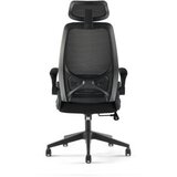 Ergonomska stolica sa mrežastim naslonom i podesivim glavonaslonom Ova ergonomska kancelarijska stolica, sa crnom poliamidnom konstrukcijom i mrežastim naslonom, pruža maksimalnu udobnost i podršku tokom dugotrajne upotrebe. Dizajnirana je sa odvojenim sedištem i naslonom, dok je glavonaslon podesiv, izrađen od mreže, pružajući optimalnu podršku za glavu i vrat. Savršen je izbor za kancelarijske i radne prostore. Podrška i fleksibilnost Naslon stolice je fiksan i mrežast, što omog