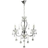 Jačina: Max. 40W Zemlja porekla: N. R. Kina Tip grla: 3xE14 Napon: 220240V / 5060Hz Boja: Hrom Materijal: Metal + Staklo Dimenzije: š: 490mm, v1: 620mm, v2: 950mm Stepen zaštite: IP20