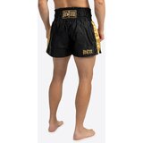Men's thaibox trunks Model description: the GOLDY thaiboxing trousers are made of satin and are ideally suited for training and competition. The super elastic waistband guarantees perfect support and the side slits on the legs ensure maximum freedom of movement. Great extras are the contrasting stripe on the side seams, the woven BENLEE label and the highquality application. Quality: 100% polyester