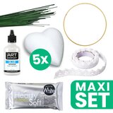 Elegantni ručno rađeni set za venčane dekoracije je idealno rešenje za sve kreativce koji žele da ručno kreiraju originalne venčane dekoracije . Bez obzira da li pripremate romantične dekoracije za venčanje, proslavu, fotografisanje ili poklon, ovaj set sadrži sve što vam je potrebno za kreiranje jedinstvenih aranžmana. Pakovanje uključuje zlatni metalni prsten prečnika 15 cm, koji služi kao osnova za venac ili viseću dekoraciju, 10 komada cvećarske žice za pričvršćivanje elemenata, 5 srca od stiropora za dekorativne motive, 1,8 m samolepljive pamučne čipkaste trake, super laganu samotvrdnuću glinu Hearty Soft od 180 g pogodnu za modeliranje cveća ili ukrasa i univerzalni vodootporni lepak od 100 ml za pouzdano pričvršćivanje svih delova. Zahvaljujući ovom setu, čak i potpuni početnici mogu da se nose sa efektnim ručno rađenim dekoracijama. Rezultat će biti nežne, romantične i stilske venčane dekoracije. Osnova: zlatni metalni prsten 15 cm Cvećarska žica: 10 kom, prečnika 1 mm Srca od stiropora: 5 kom, veličine 5 cm Samolepljiva pamučna čipkasta traka: 1,8 m Samoočvršćavajuća Hearty Soft glina: 180 g, bela Lepak: univerzalni, vodootporni, 100 ml