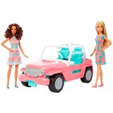Barbie drugarice kreću na put u svom kabrioletu! Sportski dvosed poseduje pokretljive točkove, svetlo roze je boje sa srebrnim svetlima i bočnim retrovizorima, sedištima u svetlo plavoj boji i sa sigurnosnim pojasevima koji omogucavaju elegantnu vožnju.Barbie lutke su obučene u letnje haljine veselog dezena i sandale.Krenite u nezaboravnu avanturu!Uzrast: 3+.