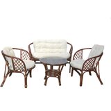 Baštenska garnitura ratan braon Bahama je ukusno dizajnirana garnitura od prirodnog ratana, braon boje. Garnitura Bahama stvoriće od vrta oazu za uživanje i odmaranje. Bahama baštenski set čine sto za kafu, 2 stolice i sofa sa udobnim jastucima. Površina okruglog kafenog stola, napravljena je od prozračnog, kaljenog stakla debljine 5mm i prečnika 60cm. Set čine: 2 stolice, sto za kafu, sofa Dimenzije stolice: 70x68x71cm Dimenzije sofe: 113x68x71cm Dimenzije stola: dia. 57cm H: 50cm Kaljeno staklo dia. 60cm Debljina stakla: 5mm Boja: braon Materijal: prirodni ratan Boja jastuka: Ekri Zemlja Porekla: Indonezija Barcod:8606026945503