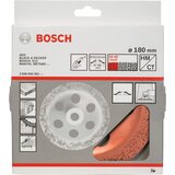Prilagođena za obradu plastike ojačane staklenim vlaknima, gasbetona, mekog i tvrdog drveta, boja, lakova, gletmase, gume, pluta, kože, plastike, peščanika, silikatne opeke. Za ručne ugaone brusilice kod maksimalne periferne brzine: 80 m/s (zavisno od broja obrtaja i prečnika ploče). Napomena: rad bez prašine sa Bosch štitnikom za usisavanje koji se pričvršćuje bez upotrebe alata 2 605 510 107. Lončaste ploče oslojene tvrdim metalom za svestrane mogućnosti primene. Prikladne za uklanjanje šavova oplata na površini betona, ostataka betona na oplatama, ostataka lepka na keramičkim pločicama, ostataka plastike ojačane staklenim vlaknima ili debelih slojeva boje, obradu silikatnih opeka kao i zaobljavanje mermera, čišćenje zaštitnih premaza sa manjih površina, prilagođavanje gasbetona, nega kopita kod životinja. Različito oslojeno zrnima grubo, srednje, fino za tačno prilagođene radove. Sve Bosch lončaste ploče sa tvrdim metalom su pojedinačno izbalansirane.
