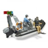 BRUDER policija se pojačava i proširuje svoje područje delovanja na vodi. Da bi ubuduce mogli da rade na bilo kojoj vrsti podloge, osoblje hitne pomoci BRUDERa ce biti dopunjeno gumenim čamcem i roniocem. Zahvaljujuci svojoj upravljivosti i svestranosti, policijski čamac sa kontrolnom konzolom je važan pomocnik u svakodnevnom životu policije. Da bi deca bila u mogucnosti da ponovo odigraju ove misije što je moguce bliže stvarnosti, policijski čamac BRUDER je naravno plutajuci i opremljen svestranim svetlom. Dve bworld figure upotpunjuju ovaj sveobuhvatni set. Dok je policajac određen da kontroliše čamac, potpuno opremljen policijski ronilac brine o operacijama u vodi. Policijsko vozilo Jeep Vrangler Rubicon (br. artikla 02526) i bworld spasilačka stanica (br. art. 62780) iz opsežnog tematskog sveta vozila hitnih službi su posebno pogodni za proširenje vrednosti igre. Sadržaj Ronilac sa cilindrom kiseonika, aparatom za disanje i perajama Trepcuce svetlo UPOZORENJE! Nije pogodno za decu mlađu od 36 meseci. Opasnost od gušenja sitni delovi. Preporučeni uzrast: pogodno od 4 godine naviše za igranje u zatvorenom i na otvorenom proizveden od visokokvalitetne plastike kao što je ABS Razmer 1:16