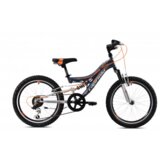 Ram: Hiten full suspension steel frameVila: Md711x 20" suspension forkŠoljica vile: Fph509p, 9 pcsUložci srednjeg pogona:Thun, 122.5 mmSrednji pogon:Spb5bybt, 40tx152mm steelPrednji menjač: Zadnji menjač: Shimano rdty21Ručica menjača: Shimano shift/brake lever, slrs356rBrzina: 6Zupčanici / freewheel: Shimano freewheel sprocket, mftz500, 6 speedLanac: Kmc z6, 6 speedKočnica: Logan alloy vbrakeGlave: Steel kt122f, steel gla03rObruči: Krypton x, 20x1.5 36h, alloy dwDimenzije točka: 20"Pneumatici: Mitas scylla v75 (50406)Lula / handle stem : Steel, dia. 22.2 mm, barbore:31.8mm, ext:100 mmUpravljač / handle bar: Steel, oversized, w: 580mStub sedla / seat post: Steel 25.4x200 mm w/o clampSedlo: Ddk 5272Pedale: Fp818, pp bodyMaterijal rama: ČelikRam 11" preporučena visina vozača 130140cmZa uzrast od 6 do 9 godina