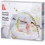 Ova podloga za igru je šarena, smešna i privuci ce pažnju vaše bebe. Tokom igre stimuliše bebinu motoriku, veštine učenja i sva čula. Meka tkanina, različite teksture i zabavne igračke pretvaraju ovu prostirku za igru u bebinu vrhunsku teretanu! Vaši mališani ce uživati u mekoj udobnosti, šarenim igračkama i različitim zvucima koji zabavljaju i podstiču igru.. Specijalno dizajniran za novorođenčad i više;. Meka plišana tkanina i različite teksture;. Opremljen sa lukovima i pet različitih igračaka za vešanje tako da ce beba biti angažovana satima igre;. Igračke se mogu ukloniti i lako se čiste;. Mališani ce se zabaviti svetlim šarama i mnogo toga da čuju, vide, osete i dodirnu;. Podloga za igru osigurava bebu svojom dodatnom podstavljenom površinom;. Proizvod se nudi u prelepoj poklon kutiji;. Ova igračka je proizvedena u skladu sa zahtevima evropskih direktiva i standarda u vezi sa bezbednošcu igračaka.. Veličina proizvoda: 91k91k56 cm. Veličina kutije u boji: 50,5k11k58,5 cm