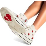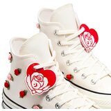 BOLJE OD SAMOG BUKETA Ruku na srce cveće uvene, a bombonjera se brzo pojede. Ove godine, počastite svoju bolju polovinu nečim što će trajati i nakon Dana zaljubljenosti. Ruže će biti svakodnevni podsetnik na vašu romantičnu stranu i ljubav. Prednosti i Karakteristike Gornjište od izdržljivog platna pruža premium izgled i osećaj klasičnih starki. OrthoLite uložak obezbeđuje optimalnu udobnost tokom nošenja. Aplikacija sa ružama daje im romantičnu notu. Đon sa printom srca i visuljak sa ljubavnom temom donose vibracije Dana zaljubljenih. Legendarni All Star znak na jeziku i pločica dodaju prepoznatljiv Converse pečat.