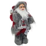klasični deda mraz u crvenom odelu unosi toplinu i veselje u svaku prazničnu dekoraciju. izrađen od kvalitetnog tekstila, ovaj deda mraz visine 38 cm nosi džak sa poklonima na leđima i fenjer u ruci, spreman da donese svetlost i radost u vaš dom.