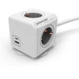 PowerCube Extended USB A+C DE je kompaktan, ali snažan razvodnik koji donosi potpunu fleksibilnost u svakodnevnom korišćenju elektronskih uređaja. Sa četiri uzemljene utičnice i dva USB porta (USBA i USBC), omogućava istovremeno napajanje više uređaja bez nereda i kablova koji se zapliću. Zahvaljujući dužini kabla od 1,5 metara i inovativnom nosaču za montažu, ovaj power cube možete postaviti bilo gde na zid, ispod stola ili na radnu površinu za jednostavan i brz pristup utičnicama. Uz dodatnu zaštitu za decu, moderni dizajn i izlaznu snagu od 12W, PowerCube je idealan za kancelariju, kuću ili putovanja. Lagan je, prenosiv i dovoljno kompaktan da stane na dlan, a opet dovoljno moćan da napaja sve vaše uređaje od pametnih telefona do manjih elektronskih uređaja.