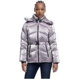 Desigual siva ženska jakna sa metalik završnicom. Prošiveni model sa zip kopčanjem i kapuljačom.