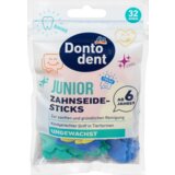 Štapici za zubni konac Dontodent Junior su specijalno razvijeni za decu od 6 godina. Posebno nežni zubni konac je zategnut, omogucavajuci temeljno čišcenje međuzubnih prostora. Čak se i do područja zadnjih zuba može se lako doci zahvaljujuci rukohvatu prilagođenom deci. Drška u obliku smešne životinje čini čišcenje međuzubnih prostora zaista zabavnim. Junior štapici za zubni konac pomažu u sprečavanju karijesa i problema sa desnima kada se redovno koriste.