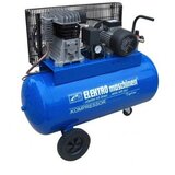 Dvocilindrična kompresorska pumpa sa cilindrom od lakog liva. Remenski pogon. Hladnjak vazduha na izlazu iz kompresorske pumpe. Regulator izlaznog pritiska sa manometrom i dvema brzim spojkama. Direktni izlaz iz posude pod pritiskom sa brzom spojkom. Posuda pod pritiskom zapremine 100 litara sa ispustom kondenza. Veliki točkovi za lakši transport sa prednjim okretnim točkom. Unosni protok (l / min) 348 Efektivni protok (l / min) 203 Pritisak (bar) 9 Brzina (min/1) 2,2 Napon /Frekvencija (V/ Hz) 230/ 50 Broj okretanja 1570 Broj cilindara 2 Broj stepeni 1