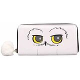 Fantastičan novčanik za sitan novac i kovanice iz kolekcije Harry Potter. Dizajn je inspirisan likom sove Harija Potera Hedvige dok zadnja strana novčanika ima logotip HP i mnoštvo sitnih pera sive boje. Novčanik ima crnu postavu a poseban šarm mu daje pufnasti pompom privezak na patentzatvaraču. Unutrašnjost je organizovana na dva glavna odeljka jedan odeljak za novčice 4 odeljka za kartice i veliki džep. Idealan je detalj za sve ljubitelje čarobnog serijala o Hariju Poteru.
