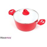 Šerpa sa poklopcem 22x10.5cm Materijal:kovani aluminium Debljina: Telo 2.3mm,Dno 4.5mm Unutrašnjost:dvoslojna keramicka presvlaka Spoljašnjost:Boja otporna na toplotu Rucke:Bakelitne sa silikonskim presvlakom(softtouched) Dno višenamensko:Indukciono,ravna ploca,gorionik,ringla. Poklopac i drška:Stakleni poklopac sa bakelitnom drškom i silikonskim presvlakom(softtouched)