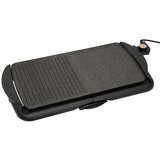 Električni roštilj, idealan za upotrebu tokom cele godine u zatvorenim prostorijama Površina za prečenje poseduje ravni i rebrasti deo Brzo se zagreva, a temperatura se može podešavati Jednostavan za korištenje i lak za održavanje Praktična posuda za sakupljanje masnoće omogućava pečenje bez suvišne masnoće Brend HOME Tip Električni roštilj Napajanje 230 V / 50 Hz Snaga 2000 W Priključni kabel 0.9 m Masa 2.2 kg Dimenzije 620x85x320 mm (uređaj), 520x265 mm (površina za pečenje)