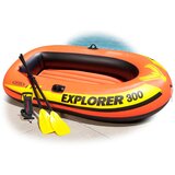 Udoban, komforan, lak za nošenje. Čamac na naduvavanje za 3 osobe. U kompletu takodje dobijate 2 vesla i ručnu pumpu visokog kapaciteta. 2 vesla dužine 120 cm Ručna pumpa Intex Double Quick I Set za krpljenje Dimenzije čamca: 211 cm x 117 cm x 41 cm Predvidjen za 3 osobe; max opterećenje 185kg 2 komore sa duplim ventilima (pod na naduvavanje za dodatni komfor i sigurnost) Ugrađeni držači za vesla Uže za držanje napred