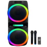 Model: INTEX DR1250 Karakteristike: Snaga: 60W Zvučnik: dvostruki 12 inča Baterija: 11.1V 4500MHA Dodaci: Dva bežična mikrofona + daljinski upravljač + adapter Dimenzije proizvoda: 355*340*843MM Pakovanje: 400*370*920MM Neto kilaža: 9.6KG Bruto kilaža: 11.5KG Prava potrošača: Zagarantovana sva prava kupaca po osnovu zakona o zaštiti potrošača