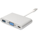 USB 3.1 Tip C na VGA+USB 3.0 adapter Model UVA23 USB3.1 USB C TipC do VGA + USB3.0 + USB Adapter za MacBook Laptop i tipove C uređaja Karakteristike Multiport adapter VGA USB na VGA je dodatak treba da ima video ogledalo od USBC uređaja do VGA ekrana a istovremeno pruža snagu za Ctip port. VGA port povećava vašu produktivnost sa mogućnošću da odražava ekran vašeg MacBooka ili drugog monitora uživajući u vidu FHD 1920 1080 o tome da li HDTV projektor ili monitor koriste VGA standard. USB 3.0 port omogućava velike brzine prenosa do 5 Gbps ili povezivanje USB perifernih uređaja kao što su tastatura miš i Flash Drive. Usbc port ženski učitava vaš laptop kao MacBook Pro Chromebook piksel