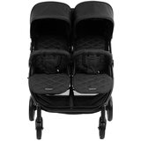 Karakteristike Kikka Boo kolica za blizance Happy 2 u crnoj boji: Pogodna su za bebe od rođenja do 15kg po detetu Velika i čvrsta ručka za upravljanje omogućava laku upravljivost kolica Velika korpa za odlaganje stvari Veliki točkovi pogodni za sve terene Podesiv nagib naslona svakog sedišta ponaosob Lagan aluminijumski ram Dve odvojene dugačke tende sa produživanjem na rajsferšlus i mrežastim prozorima Sigurnosni pojasevi za vezivanje u 5 tačaka sa mekanim naramenicama i štitnicima kopče Integrisana suspenzija na prednjim točkovima Dva nezavisna oslonca za noge podesiva u 3 položaja Brzo i lako sklapanje Dva odvojiva bampera Prednji rotirajući točkovi sa mehanizmom kočenja Centralna kočnica zadnjih točkova Set uključuje 2 zimske navlake i veliku kišnu kabanicu za oba sedišta. Dimenzije i težina proizvoda: Dimenzije rasklopljenih kolica: 73,5x79x104cm, Dimenzije sklopljenih kolica: 46,5x73x73,5cm, Težina kolica: 12kg.