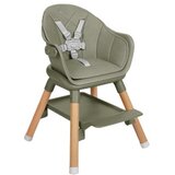 Hranilica Woody 6in1 Army Green Kikka Boo Kikka Boo hranilica Woody 6u1 Army Green je višenamenska visoka stolica dizajnirana da prati različite faze odrastanja deteta, pružajući sigurnost, udobnost i praktičnost.Njena 6u1 funkcionalnost omogućava korišćenje u različitim varijantama kao visoka hranilica, niska hranilica, dečija stolica, stočić za igru i još mnogo toga, čime se produžava njen vek trajanja i prilagođava potrebama deteta. Dečija hranilica Woody 6u1 Kikka Boo je opremljena sigurnosnim pojasevima u 5 tačaka, koji osiguravaju stabilnost i bezbednost tokom korišćenja, dok mekana kožna presvlaka sedišta pruža dodatnu udobnost i lakoću održavanja.Za praktičniju upotrebu, hranilica poseduje duplu tacnu, pri čemu se gornji sloj može skinuti i jednostavno oprati.Noge su opremljene neklizajućim završecima, čime se sprečava klizanje i obezbeđuje stabilnost tokom upotrebe.Moderan i neutralan dizajn omogućava lako uklapanje u svaki enterijer, dok funkcionalnost Kikka Boo hranilice za decu Woody 6u1 garantuje dugoročnu upotrebu. Kikka Boo hranilica Woody 6u1 Army Green je idealan izbor za roditelje koji žele praktičnu, sigurnu i višenamensku hranilicu koja raste zajedno sa detetom, pružajući maksimalnu udobnost i lakoću korišćenja.Karakteristike: 2 u 1 drvena visoka stolica pogodna za različite faze razvoja. Pogodno za decu koja mogu da sede do 3 godine faza 1 / do 5 godina faza 2. Sa sistemom pojaseva u 5 tačaka. Sa plastičnim ležištem. Sa diskom podesivim u 3 položaja. Sa drvenim osloncem za noge. Sa presvlakom sedišta od eko kože. Noge protiv klizanja. Težina: 5,6 kg.Dimenzije: Dimenzije stolice: 52 x 43 x 62,7 cm