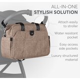 Chelsea je moderna i prostrana torba za mame, dizajnirana za savremene roditelje koji žele spoj funkcionalnosti i elegancije. Izrađena od luksuznog strukturiranog materijala sa kožnim i metalnim detaljima, ova torba kombinuje elegantan dizajn sa praktičnošću, omogućavajući da sve neophodne stvari budu uredno organizovane. pametna organizacija više odeljaka obezbeđuje poseban prostor za pelene, garderobu i druge potrepštine, uključujući i vodootporni džep za vlažne stvari termo zaštita dva termo odeljka za flašice održavaju tečnost na odgovarajućoj temperaturi satima, tako da bebin napitak ostaje topao ili hladan praktična i dostupna opremljena kopčama za brzo kačenje na ručku kolica i elastičnim bočnim džepovima za lak pristup najvažnijim stvarima udobno nošenje dolazi sa dugim, podesivim kaišem za rame, pružajući raznovrsne i udobne opcije nošenja Napravljena od 100% poliestera, Chelsea torba za mame je izdržljiva i osmišljena da izdrži svakodnevne izazove roditeljstva. U kompletu se nalazi i podloga za presvlačenje kako biste uvek bili spremni za promenu pelena u pokretu. težina torbe: 900g dimenzije torbe: 44x28x16cm