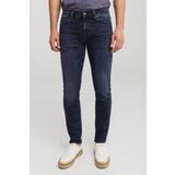 Muške skinny farmerice u tamno plavom tonu, dizajnirane sa niskim strukom i uskim nogavicama koje prate liniju tela. Izrađene od rastegljivog denim materijala koji pruža udobnost i slobodu pokreta tokom celog dana. Klasičan petodžepni kroj, zatvaranje na rajsferšlus i dugme. Idealne za svakodnevni urban stil i večernje izlaske.
