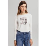 Bela ženska majica dugih rukava sa upečatljivim printom u formi fotografija unosi umetnički duh u svakodnevni stil. Mekan i prijatan materijal obezbeđuje udobnost tokom celog dana, dok moderan dizajn čini ovu majicu lako uklopivom u casual i urbane kombinacije. Jedinstveni print u neutralnim tonovima dodaje posebnu dozu karaktera i originalnosti.