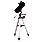 Karakteristike:Njutnov reflektor kratkog fokusaStaklena optika sa antirefleksnim premazomKomplet uključuje dva okulara različite žižne dužineČvrsti aluminijumski stativ sa držačem za priborEkvatorijalni nosač omogućava vrhunsku praktičnu kontroluKomplet uključuje:teleskopska optička cijevEkvatorijalni nosačAluminijski stativ sa držačem za priborTražilac Red DotOkular od 10 mm, 45xOkular od 20 mm, 22,5xKontrolne ručice za usporeno kretanjeKontra tegTeleskop Levenhuk Skyline PLUS 115S reflektor, kratkog fokusa, za istraživanje objekata dubokog neba. Zbog velikog otvora blende (primarno ogledalo), skuplja mnogo svetlosti i omogućava posmatranje čak i prigušenih zvezda. Najefikasniji je za posmatranje maglina, galaksija, zvezdanih jata i drugih objekata koji se nalaze daleko izvan granica Sunčevog sistema. Takođe, možete posmatrati planete, ali je njegovo glavno polje upotrebe istraživanje svemira.Komplet uključuje dva okulara svaki od njih obezbeđuje malo uvećanje, što je optimalno za proučavanje proširenih (velikih) nebeskih objekata. Možete nabaviti dodatne okulare sa kratkim fokusom i povećati uvećanje teleskopa do 228x ukoliko je potrebno. Optika teleskopa omogućava posmatranja i sa velikim uvećanjem.Teleskopska cev je postavljena na ekvatorijalni nosač, koji olakšava praćenje astronomskih objekata. Teleskop je jednostavan za rukovanje, kretanje optičke cevi je glatko i ravnomerno. Nosač je pričvršćen na aluminijumski stativ. Opremljen je tacnom za pribor. Noge stativa se mogu podešavati po visini. Teleskop stoji stabilno i lako se prilagođava visini posmatrača.Optički Dizajn: Newton reflektorPrečnik Objektiva: 114 mmFokusna Dužina: 450 mmSvetlosna Moć: f/4Maksimalno Uvećanje: 228xGranična Zvezdana Magnituda: 12.38Fokuser: 1,25"Prečnik Okulara: 1.25"Okulari: 10mm (45x) i 20mm (22.5x)Tražilac: Red DotMehanika: EQ1Antirefleksivni Premaz: DaOstalo: Tacna za pribor, Kontar teg 2.2kg, Vixen lastin rep, Visina stativa (podesiva): 7101230mmNamena: Početnici