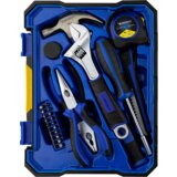 1 x kombinovana kliješta 160 mm.1 x dugačka kliješta 160 mm.1 x nož 18 mm.1 x metar 3mx16mm.1 x čekić sa kandzom 8 oz.1 x plastična čaura za čekic.1 x podesivi ključ 200 mm.1 x držač bitova sa plastičnom ručkom.1 x 10 komada bitova sa plastičnim držačem, veličina: Slotted: 4 mm, 5 mm, 6 mm, 7 mm; Phillips: PH1, PH2, PH3; Hex: 3 mm, 4 mm, 5 mm; Pozi: PZ1, PZ2, PZ3; Torx: T10, T15, T20, T25, T27, T30, T40.1 x plastična kutija.Materijal: hrom vanadijum čelik.Visokokvalitetni set idealan za kucnu upotrebu.Odlična ideja za poklon i idealna za one zadatke uradi sam kod xuce ili u garaži.Dimenzije: 29,2 x 6,6 x 22,6 cm