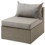 Centralni modul od čelika i ručno pletenog petana otpornog na vremenske uslove. Sa luksuznim jastucima sa dugotrajnom, gusto tkanom poliesterskom navlakom Veličina nakon montaže Širina: 72 cm, Visina: 64 cm, Dubina: 82 cm Visina sedišta 31 Težina 12 kg Materijal Konstrukcija: čelik, Naslon: petan, Sedalo: petan Obrada Premaz u prahu Boja natur uključuje Luksuzni jastuci sa dugotrajnom prošivenom poliesterskom navlakom Informacije o montaži Montiran