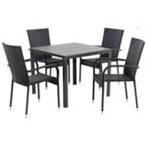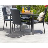 Stolice Fenost: Veličina nakon montaže Širina: 55 cm, Visina: 94 cm, Dubina: 63 cm Visina sedišta 45 Visina naslona za ruke 65 cm Težina 5 kg Materijal Konstrukcija: čelik, Naslon:petan , Sedalo:petan , Naslon za ruke:petan , Noge: petan , čelik Čep za noge polipropilen Tip složiva stolica (jedna na drugu) Funkcija složivo jedno na drugo Obrada Boja crna Informacije o montaži Montiran naknadno održavanje Čistite vodom i blagim sapunom. Odlaganje Odložiti u unutrašnjem prostoru tokom zime Upotreba Za spoljašnji prostor Monet sto : Veličina nakon montaže Širina: 90 cm, Dužina: 90 cm, Visina: 74 cm Visina stola od poda do donje ivice rama 70 cm Veličina pre montaže Širina: 99 cm, Dužina: 99 cm, Visina: 8 cm Težina 11,8 kg Materijal Ram:aluminijum, Površina stola:veštačko drvo , Noge:aluminijum Čep za noge polipropilen Oblik kvadratni Obrada Boja crna Nije potrebno održavati da Informacije o montaži potrebno montirati naknadno održavanje Nije potrebno održavati. Čistite vodom i blagom sapunicom. Odlaganje Odložiti u unutrašnjem prostoru tokom zime