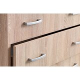 Materijal: HDF (ploča visoke gustine), melamin, iverica Materijal: Prednja strana: melamin, iverica, Gornji deo: melamin, iverica, Dno: melamin, iverica, Strana: melamin, iverica, Zadnja strana) Boja: Hrast Karakteristike: Fioke Uključuje: 5 fioka Veličina nakon montaže: Širina: 70 cm, Visina: 103 cm, Dubina: 37 cm Informacije o montaži potrebno montirati Veličina pre montaže: Širina: 39 cm, Dužina: 108 cm, Visina: 17 cm Broj paketa 1 Kvalitet BASIC