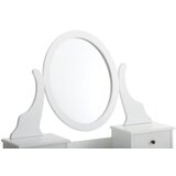 Konzolni stočić sa ogledalom Maling Materijal: medijapan, ravno staklo, masivna borovina Obrada: lakirano Boja: bela Veličina nakon montaže: Širina: 80 cm, Visina: 130 cm, Dubina: 40 cm Informacije o montaži: potrebno montirati
