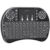 Bežična mini tastatura za Smart TV, Android TV Box, PC, Smart Mobile, PS3, Xbox Pozadinsko osvetljenje u više boja (plava, zelena, crvena, žuta...) Touch pad funkcija (pritiskom na Fn taster i prevlačenjem po površini ToucPada aktivira se funkcija skrolovanja kao da koristite točak na mišu) Funkcija miša sa poboljšanim mogućnostima DPI podešavanje za razne veličine ekrana Integrisane kontrole za miš, multimediju i internet 10 praktičnih multimedijalnih tastera Tip Tastatura Napajanje Liion baterija, struja punjenja 300 mA, 5 V mini USB kabel Interfejs USB bežično 2.4 GHz Domet 10 m Kompatibilnost Smart TV (2D/3D), Android TV Box, PC, Notebook, Netbook, Tablet, Smart telefoni, PS3, Xbox 360 i druge gejming konzole... Operativni sistem (OS) Podržani sistemi: Windows (7/8.1/10), Linux (Debian 3,1; Redhat 9.0; Ubunty 8.10; Fedora 7.0), Android Dodatne funkcije Pozadinsko osvetljenje tastera u bojama (plava, zelena, ljubičasta, žuta, crvena...), touch pad funkcija, DPI podešavanje, 10 multimedijalnih tastera, kontrole za miš, multimediju i internet Masa 110 g Dimenzije 146.8x97.5x19 mm