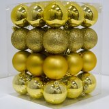 Set sadrži 36 ukrasnih kugli za jelku. Boja:Zlatna U kompletu dolazi18 sjajnih, 9 mat i 9 gliter kugli Prečnik kugle: 6 cm