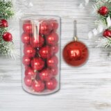 Novogodišnji ukras kugle crvene 5 cm pakovanje 30 komada Novogodišnji ukras, crvene kugle su izrađene od kvalitetne plastike, što garantuje trajnost. Ove kugle su prečnika 5 cm i preporučljive su za jelke manje visine od 90 ili 120 cm, kao i za više grane na većim jelkama. Pakovanje ovih novogodišnjih ukrasa kuglica je idealno ukoliko želite jelku da okitite u jednoj boji. Dolaze u pakovanju od 30 komada. Materijal: plastika Prečnik kuglica: 5 cm Pakovanje: 30 kom.