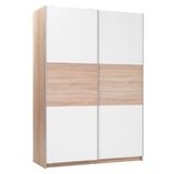 Veoma lep i moderno dizajniran ormar Trust Materijal: HDF (ploča visoke gustine), melamin, metal, iverica Vrsta: klizna vrata Uključuje: 2 nosača za vešalice, 2 police Boja: hrast, bela Veličina(ŠxVxD): 150 x 218 x 62 cm