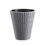 Saksija izrađena od visokokvalitetne, otporne plastike. Njihova otmena površina sa talasastim vertikalnim ispupčenjima podseća na pustinjski pesak. Laka za održavanje, dovoljno je obrisati vlažnom krpom. Modernog je dizajna. Predstavlja savršen dodatak uređenju enterijera i eksterijera. SA ULOŠKOM