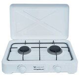 Plinski rešo, poseduje dva gorionika. Veći gorionik je prečnika 7,5 cm, a drugi 5 cm. Jačina plinskog rešoa je 2,5 kW. Maksimalna potrošnja gasa je 185g/h. Na svakom gorioniku postoji mogućnost podešavanje plamena. Izrađeni su u dve boje: braon i beli. Idealan je za pripremanje hrane u kući, na terasi, vikendici itd. Plinski rešo radi isključivo na propan butan bocama za domaćinstvo. Širina: 50cm Visina: 10 cm Dubina (sa priključkom i dugmićima): 33 cm Težina: 2,9 kg Dostupne boje: beli, braon Kabel i regulator pritiska ne idu uz rešo