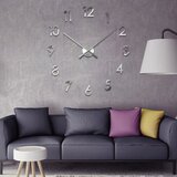 Samolepljivi zidni sat 3D T4341S Materijal: EVA, Akril, Aluminijum Brojevi su samolepljivi i mogu se lepiti na sve podloge, moguće ih je odlepiti uz minimalne tragove na zidu. Kućište sata: Prečnik 10 cm Dužina najduže kazaljke za minute 35cm. Baterija nije uključena u komplet, koristi običnu bateriju 1,5v AA. Debljina brojeva: 1.1 cm Aluminijumske kazaljke Boja: srebrna, efekat ogleda