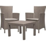 Baštenska garnitura ROSARIO je klasičan i funkcionalan balkonski set. Sastoji od dve profilisane fotelje i malog stola. Ova baštenska garnitura u cappuccino boji je izrađena od laganog polipropilena. Proizvođač Allibert Tip Set od 3 elementa Namena Za korišćenje na otvorenom ili u zatvorenom prostoru Materijal Pvc/poliester Boja Cappuccino Dimenzija fotelja (x2): 62x60x89cm ; stočić: 59x59x43cm Masa 13kg Napomena Održavanje vlažnom krpom i blagim deterdžentima. Ostalo Jastuci su uključeni u cenu.