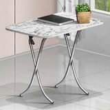 Dimenzije: 6080 cm. Boja: Beli mermer. Metalni nogari: Prečnik 25 mm. Zaštita protiv klizanja. Idealno za male prostore. Bočna strana od iverice je obložena PVC trakom debljine 1,5 mm, pružajući dodatnu zaštitu i estetski izgled. Sto se lako čisti vlažnom krpom, bez potrebe za upotrebom deterdženta. Važno je izbegavati dugotrajno izlaganje stola vodi i toploti kako bi se očuvala njegova kvaliteta.