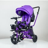 Za jedno dete 3u1 sistem (sedeći položaj, ležeći položaj, sklopljeni transportni) Mekano sediste uklonjivo Dva držača za noge uklonjivo Tenda sa UV zaštitom uklonjivo Aluminijumske felne Predviđeno za uzrast 3+ Preporuceno maksimalno opterećenje do 20 kg Meko sedište Gume na naduvavanje (model u plavoj boji) Puna guma (bež/ crvena/ ljubičasta/ narandžasta) Rotirajuće sedište Podesiv nagib naslona Amortizer Kočnica Petostepeni sigurnosni pojas Dimenzije tricikla 85x65x102cm 5kg težina