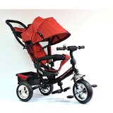Veoma jaka metalna konstrukcija čini osnovu ovog triciklaguralice, gabaritnog izgleda čija je dužina oko 90 cm, a visina preko 1m. Plastični delovi su izrađeni od jake plastike koja je otporna na atmosferske prilike I ne bledi na suncu. Tenda detetu pruža zaštitu od sunca i vetra, a mekano sedište dodatno omogućava bezbednu vožnju za decu mlađeg uzrasta. Tricikl je multifunkcionalan, kako dete raste možete ga prilagoditi tako što ćete ukloniti držač za noge, ručicu za guranje i tendu, i dobijate klasičan tricikl koje dete samostalno vozi sve do predškolskog uzrasta. Proizvod je predviđen za decu mlađeg uzrasta, dostupan u sivoj, bež i ljubicastoj boji. Ukoliko se proizvod koristi kao tricikl, potrebno je demontirati upravljačku ručicu, postolje za noge, zaštitni obruč i tendu. Tenda kod ovog modela je izrađena od jakog lanenog platna, lako izbrazdane strukture, dopadljivih boja, pogodnih i za dečake i za devojčice. Prednost lanene tkanine je visestruka: Lan je prirodni materijal Ima visoku otpornost na habanje, i nakon višegodišnjeg korićšćenja, tkanina će izgledati kao nova Materijal je antistatičan Sprečava razvoj bakterija Prozračan je i lagan, savrsen za letnje dane kada se i proizvod najčešće koristi Ima antialergijska svojstva i potpuno je bezbedan za nežnu dečiju kožu Ostale karakteristike: Materijal: plastika i metal, tenda izrađena od jakog lanenog platna zagasite boje Sigurnosni obruč Ručica za guranje Pedale Postolje za stopala Tenda Zadnja korpa od jakog platna Dimenzije vozila 92x52x104cm Preporučeno maksimalno opterećenje do 25kg Proizvod dostupan u sivoj, bež i ljubičastoj boji Za uzrast 3+ Težina vozila12.5 kg Dodatne informacije: Proizvod se isporučuje u kutiji, nenamontiran Za montažu proizvoda potrebno je oko 30 min. Od alata su vam potrebni šrafciger i klešta, alat nije deo seta Baterije tipa AA koje se kod pojedinih modela stavljaju u volan vozila, nisu deo seta Proizvod nije za profesionalnu upotrebu