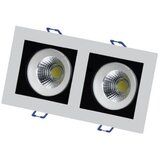 Ugradna LED lampa 16W Metalna, ugradna, sa rozetnom i strujnim trafoom Izvor svetlosti: COB LED Snaga: 2 x 8W Napon: 230V Boja: Dnevna svetlost 6500K Jačina svetlosti: 1360lm Dimenzije: 185 x 100 x 73 mm Radni vek: 30000 h Broj ciklusa uključenja / isključenja: 15000 Potrošnja električne energije: 16 kWh / 1000 h CRI vrednost: veće ili jednako 70 Ra LSF manje ili jednako 0,90 / 6000 h LLMF manje ili jednako 0,80 / 6000 h Nije dimabilna Zaštita: IP20 Garancija na lampu: 25 meseci