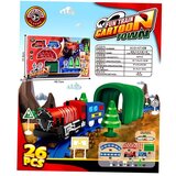 Pruga može biti sastavljena na mnoštvo načina, što razvija mototriku i maštu deteta Vesele boje, znaci, propratni elementi i delovi koji se lako uklapaju upotpunjuju set Stavite bateriju u lokomotivu, povežite je sa vagonom, i pustite da voz ide po pruzi Set sadrži: lokomotivu i 1 vagon, tunel, mostić, propratne elemente Dimenzije: 49.7 x6 x31.6cm