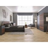 Moderna elegancija za savremenu spavaću sobu Set za spavaću sobu Paris 1 donosi savremeni dizajn koji se odlično uklapa u različite stilove enterijera. Kombinacija antracit sive boje i drvnog dezena pruža sofisticiran vizuelni utisak i čini prostor prijatnim i modernim. Ovaj komplet je idealan za one koji žele balans između estetike i praktičnosti. Kvalitetni materijali i sigurnost upotrebe Svi elementi seta izrađeni su od iverice debljine 18 mm, presvučene melaminskom folijom, sa